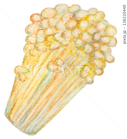 Fresh enoki mushrooms watercolor illustration isolated on white. Healthy East Asian golden needle enokitake for Chinese, Korean culinary or Japanese fusion cuisine. Vegan and vegetarian food clip art.
