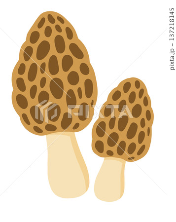 世界のきのこ<モリーユ茸・アミガサ茸の水彩イラスト>