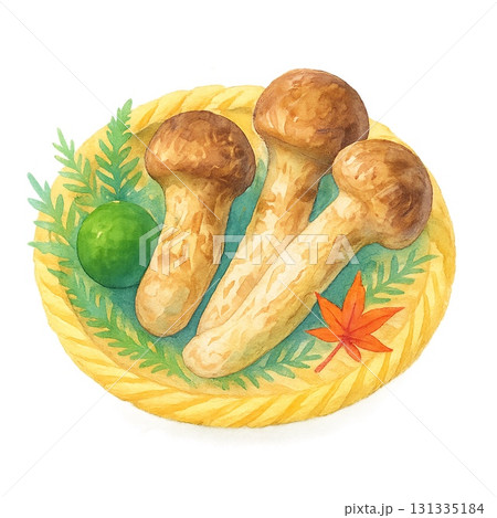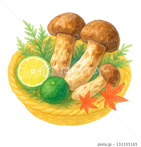 秋の味覚⭐︎ ジューシーな松茸とすだちの水彩イラスト