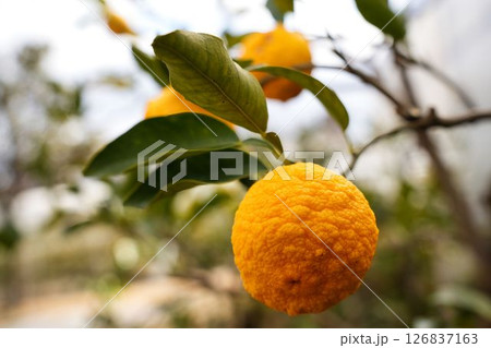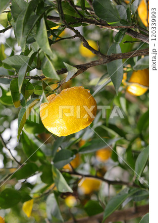 木に実った柚子
