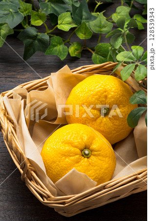 かごに入った新鮮な柚子