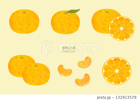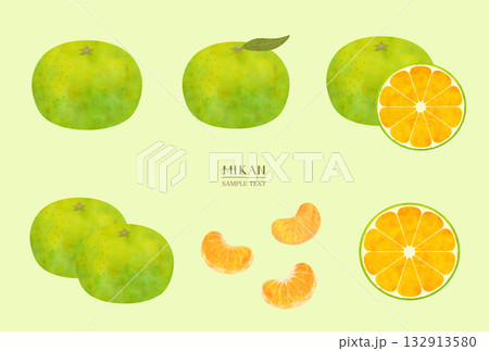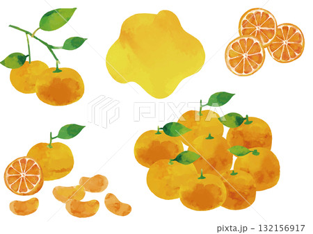 早生みかんのイラスト素材セット (水彩風ベクター)