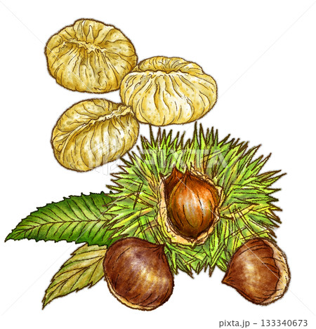 リアルな栗のイラスト・秋の味覚や食材イメージに