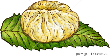 クリの葉っぱに乗った岐阜名物の栗きんとん