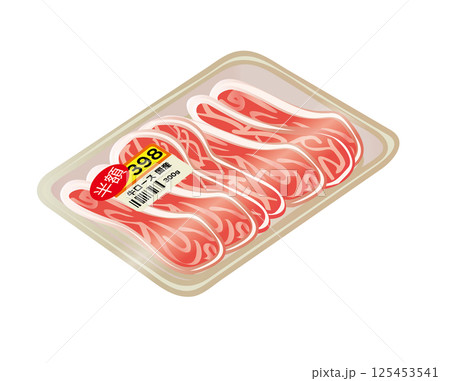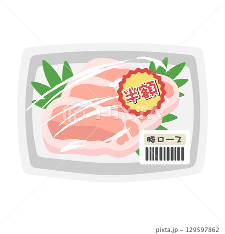 パックに入った豚肉(豚ロース) 値引き商品 スーパー イラスト
