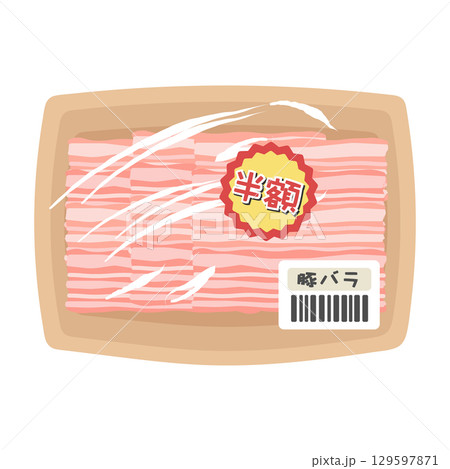 パックに入った豚肉(豚バラ) 値引き商品 スーパー イラスト