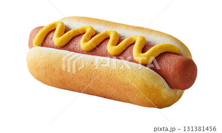 透明背景(png)にマスタードソースのかかったホットドッグの3Dイラスト