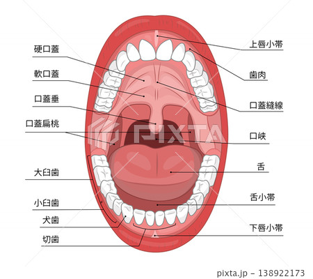 成人が口を大きく開けた口腔内と歯や喉がよくわかるイラスト