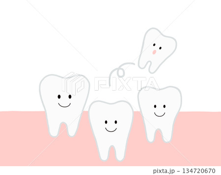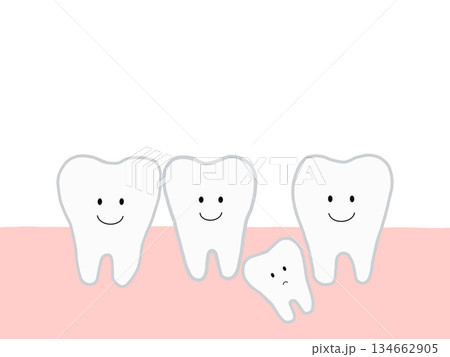 歯の生え変わり・抜歯:かわいいキャラクターのイラスト・主線あり