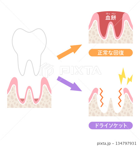 抜歯後の回復過程とドライソケットの図解 文字なし