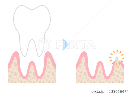手描きのゆるい歯周病の断面図のイラスト