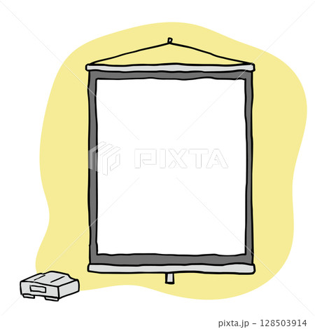 大型スクリーンとプロジェクターのある学校の視聴覚室のシンプルでかわいいアイソメトリック線画イラスト
