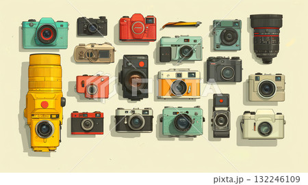シンプルでおしゃれなカメラのイラスト素材セット