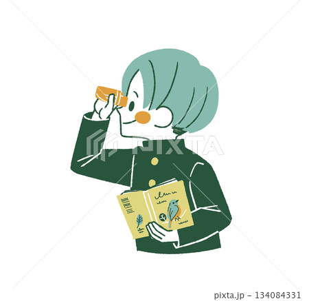バードウォッチングをしている男子学生-4色