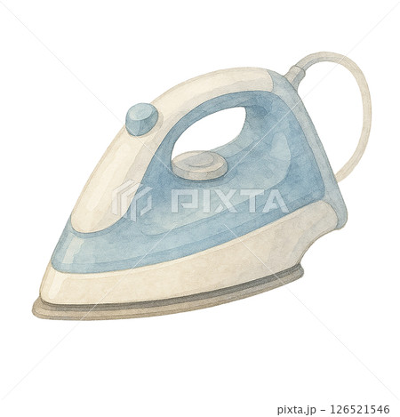 アイロンの水彩イラスト・ブルー系の配色で描かれたシンプルな生活家電素材