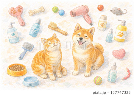 ヘアケアグッズのイラスト素材セット/卓上ミラー・シャンプー・ドライヤーなど