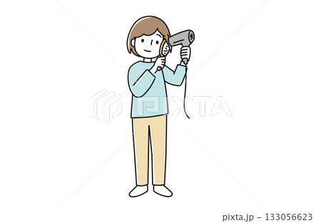 ドライヤーで髪を乾かす 人物イラスト 笑顔