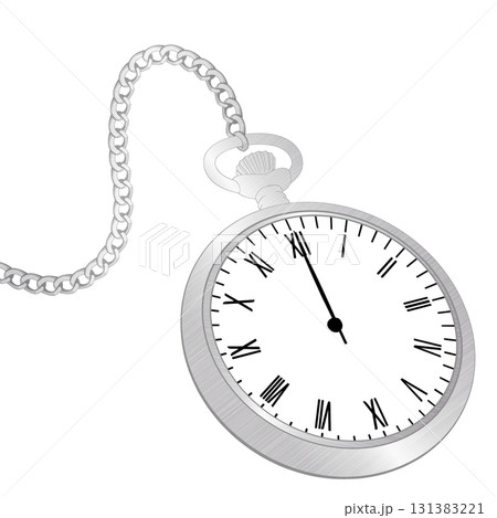 レトロなシルバー懐中時計のイラスト