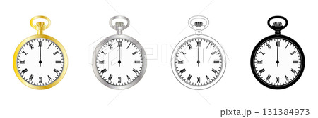 懐中時計のイラスト素材セット_アンティーク_レトロ