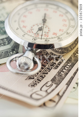 Still life of stopwatch and money