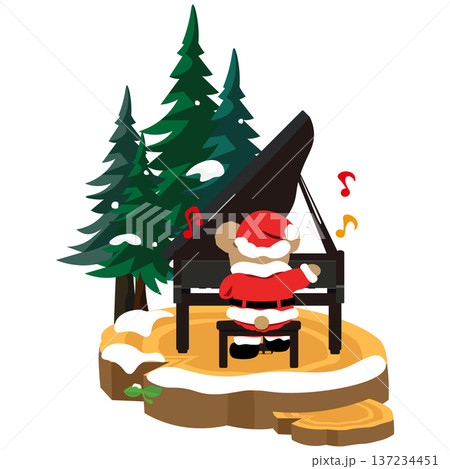 サンタのクマさんがグランドピアノを演奏するイラスト