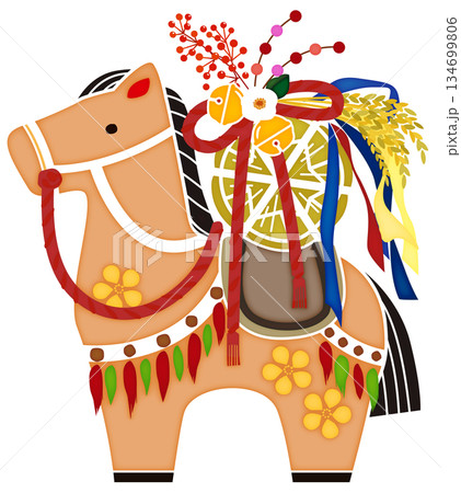 2026年 午年 年賀状用 干支の馬の太鼓を叩くのイラスト