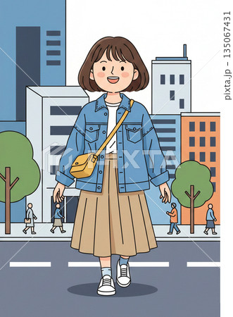 若い女性の春夏コーデ 柔らかな雰囲気 全身/正面 Generative AI