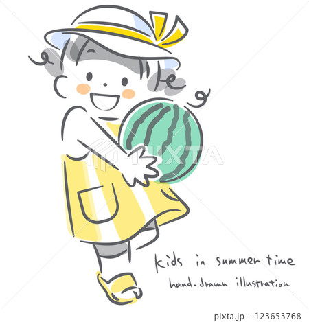 夏を喜ぶ女の子 カラフルで楽しい水彩風イラスト