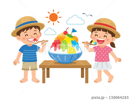 夏 子ども 夏ファッション 手を上げる 笑顔 男女 イラスト