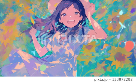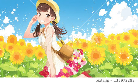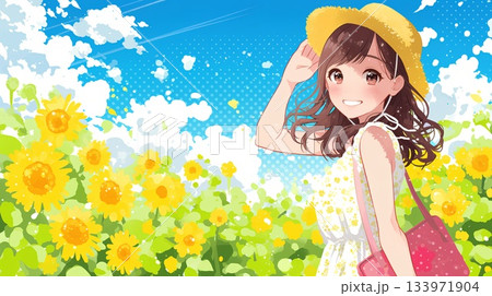 美優シリーズ:夏の陽射しの中で帽子をかぶる女の子 絵本調