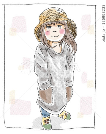 キャップとパーカーのカジュアル女性イラスト