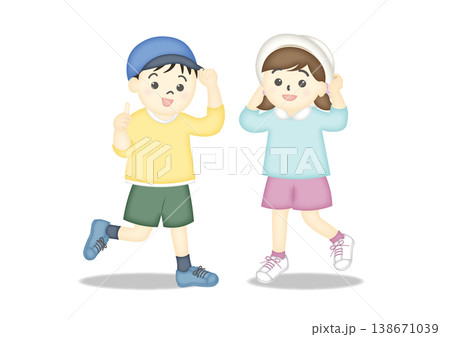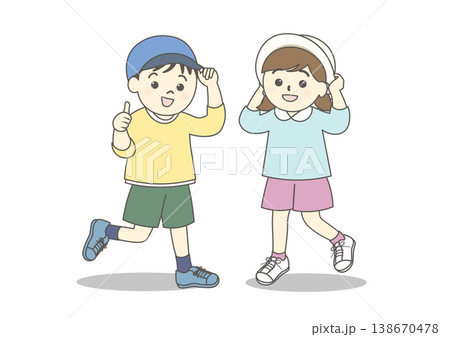 帽子をかぶった男の子と女の子のイラスト