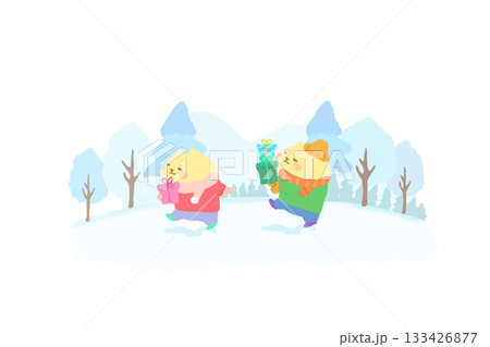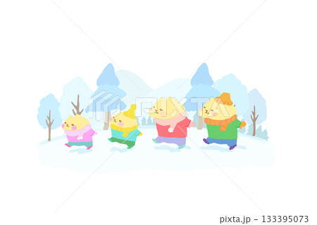 楽しく遊ぶ冬の子供たち やわらかくてカワイイ手描きイラスト