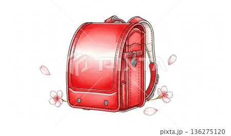 赤いランドセルのイラスト 手描き 水彩風
