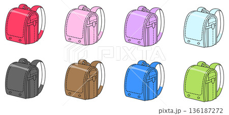 学校イラスト素材|ランドセル8色セット