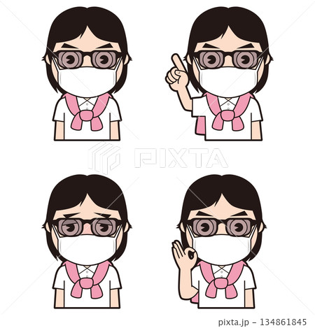 熱中症予防・帽子・日傘・サングラス着用のイラストセッ