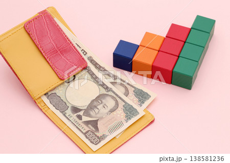 財布と積み木の階段