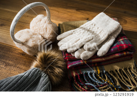 若い女性 ポートレート 手袋 マフラー