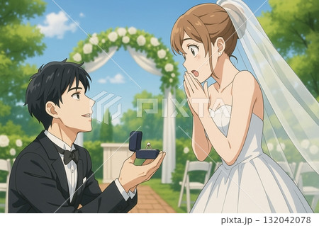 感動のプロポーズ 指輪を差し出す新郎と涙ぐむ花嫁の瞬間