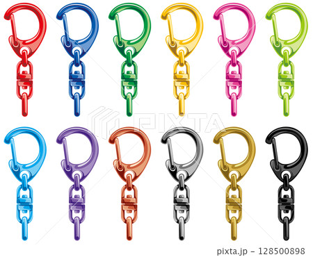 シンプルでカラフルなナスカンのキーチェーン用素材パーツベクターイラストセット