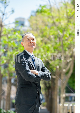 アメリカのブロックとスーツを着たミドル男性ビジネスマン