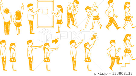 黄色いラインの高校生男女 進路案内や視線誘導に使えるアイコン的イラストセット