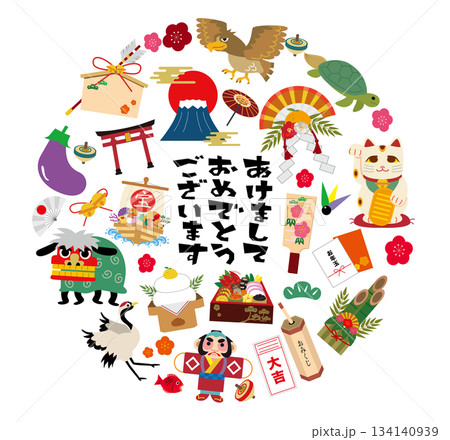 午年年賀状アイコンセット、イラスト、かわいい、お正月