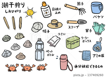 潮干狩りに必要な持ち物リストのイラスト