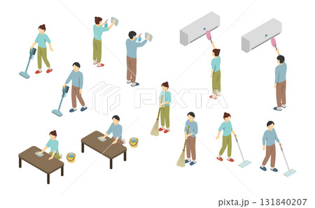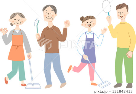 掃除 家族 親子 子供 掃除道具 イラスト セット