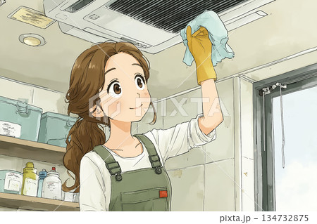 換気扇を掃除する女性