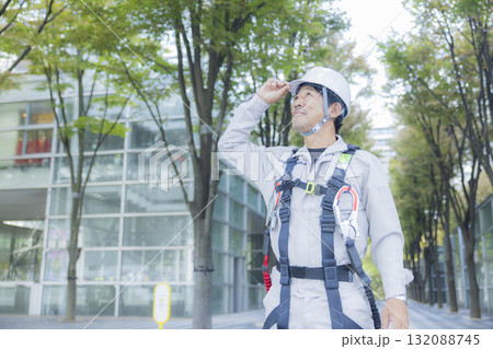 作業服の男性 ヘルメット 建設現場 後ろ姿