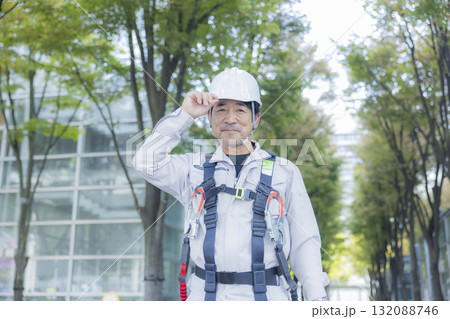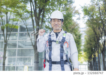 カメラ目線の60代の作業員 ビルメンテナンススタッフ イメージ