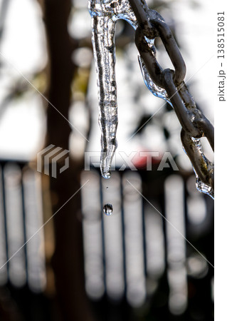 チェーンから垂れるようにあるつらら