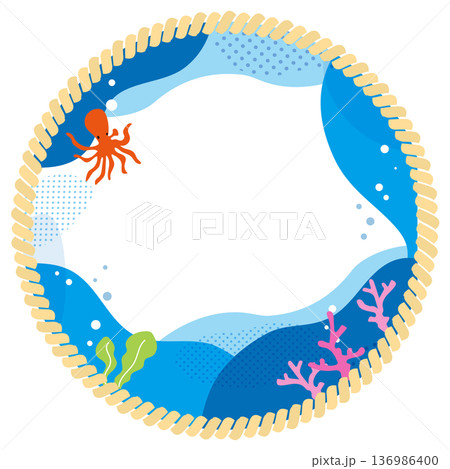 タコと海中マリンロープフレーム背景イラスト素材